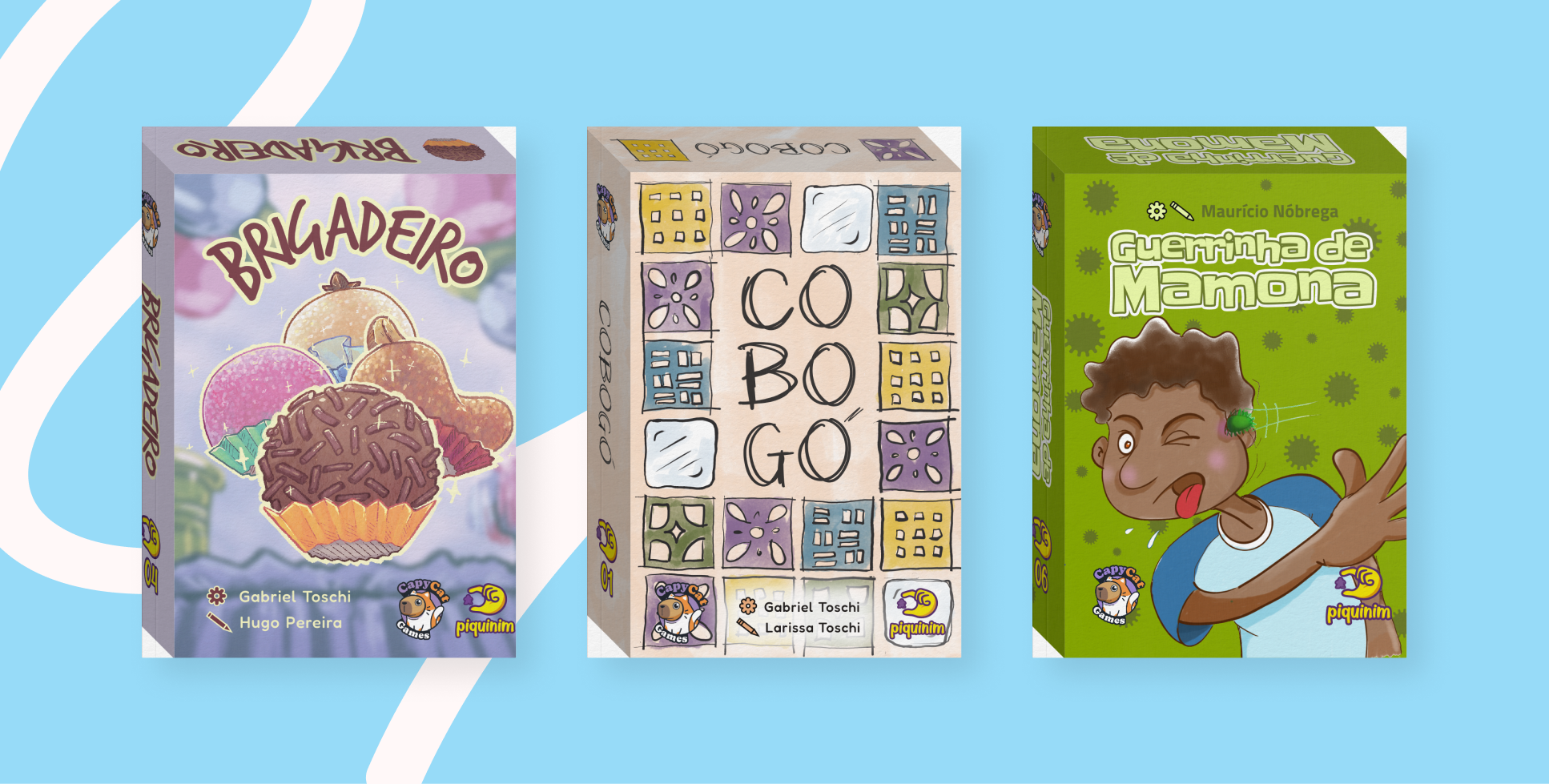 Três desses jogos já conquistaram o público e estão de volta em novas edições — Cobogó, Capivárias e Malabares —, enquanto outros três estreiam agora para o público: Brigadeiro, Troças e Guerrinha de Mamona. Cada um deles cabe no bolso, joga rápido e carrega o DNA criativo do estúdio Piquinim.