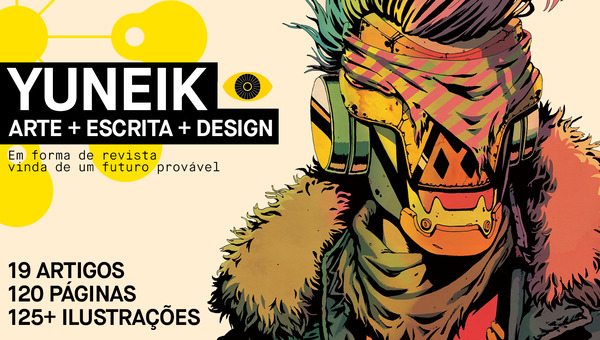 Yuneik é uma ideia rebelde: o que você terá em mãos é um livro ilustrado que mistura arte, literatura e design, mas toma a forma da "edição #104 de uma revista de tendências vinda do futuro próximo". Um art book nascido das mentes e mãos (100% humanas e revoltosas sobre o abuso da AI na criatividade atual) de um trio de criadores premiados internacionalmente.