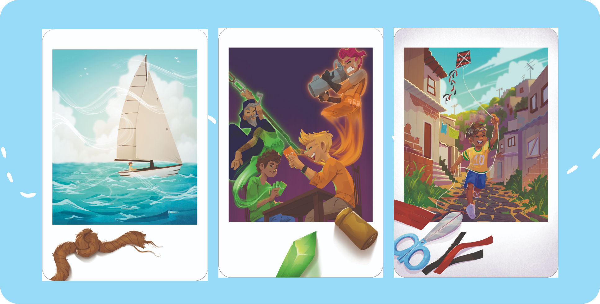 O jogo conta com 90 artes exclusivas feitas por Gustavo Furstenau retratando diversas situações, de um dia tranquilo na praia até o salto de paraquedas. Os criadores do projeto se preocuparam em fazer com que cada carta tivesse uma riqueza de detalhes para os jogadores possam criar as suas próprias histórias.