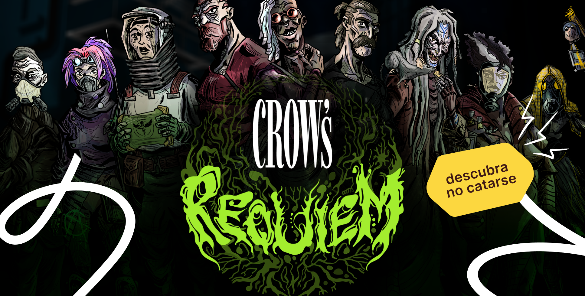Ambientado na cidade fictícia de Nova Horizonte, Crow’s Requiem coloca o jogador no papel de um Corvo, um coletor de corpos que, em uma sociedade paralisada pelo medo, pela doença e por ideologias extremas, é ao mesmo tempo evitado, temido e essencial. Livre para circular por zonas interditadas, o protagonista atua como elo involuntário entre facções em conflito, testemunhando histórias pessoais, disputas de poder e diferentes interpretações sobre o colapso do mundo.