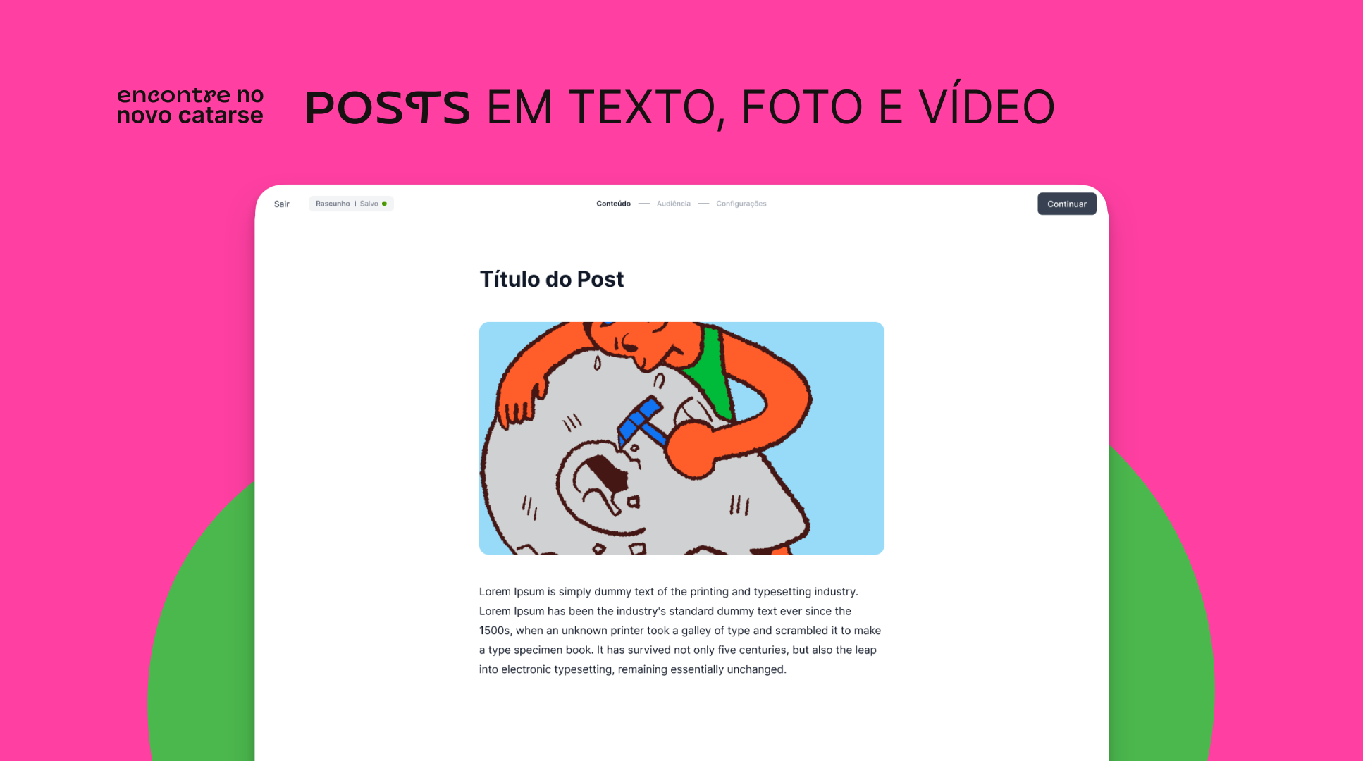 Um cantinho todo seu e da sua comunidade dentro do Catarse! Incentive sua comunidade a seguir o seu perfil para receber conteúdos de forma gratuita ou a assinar diferentes Planos de Assinatura para conteúdos exclusivos. Todos os seus posts ficarão disponíveis no feed do seu Perfil, sendo disponibilizados para o público de acordo com as configurações de privacidade que você escolher.